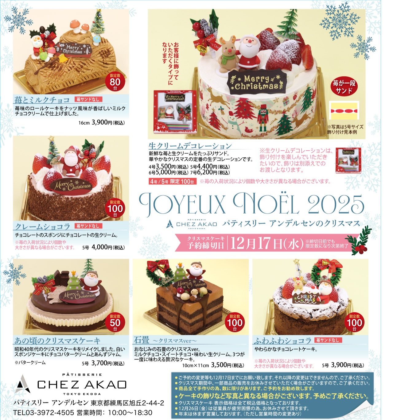当店では、クリスマスを彩る特別なケーキをご用意し、ご予約を受け付けいたします。